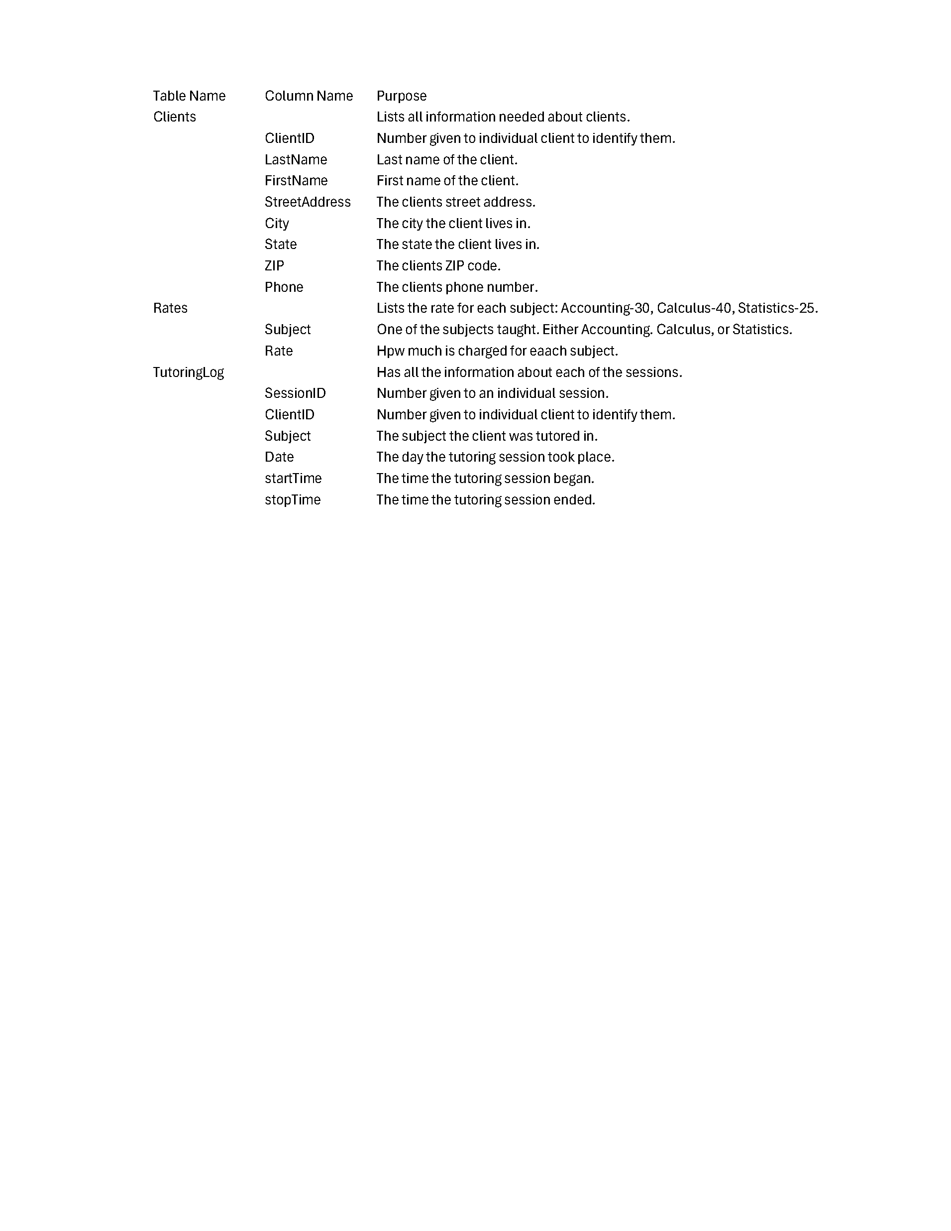 Tutoring Business: Sreadsheet