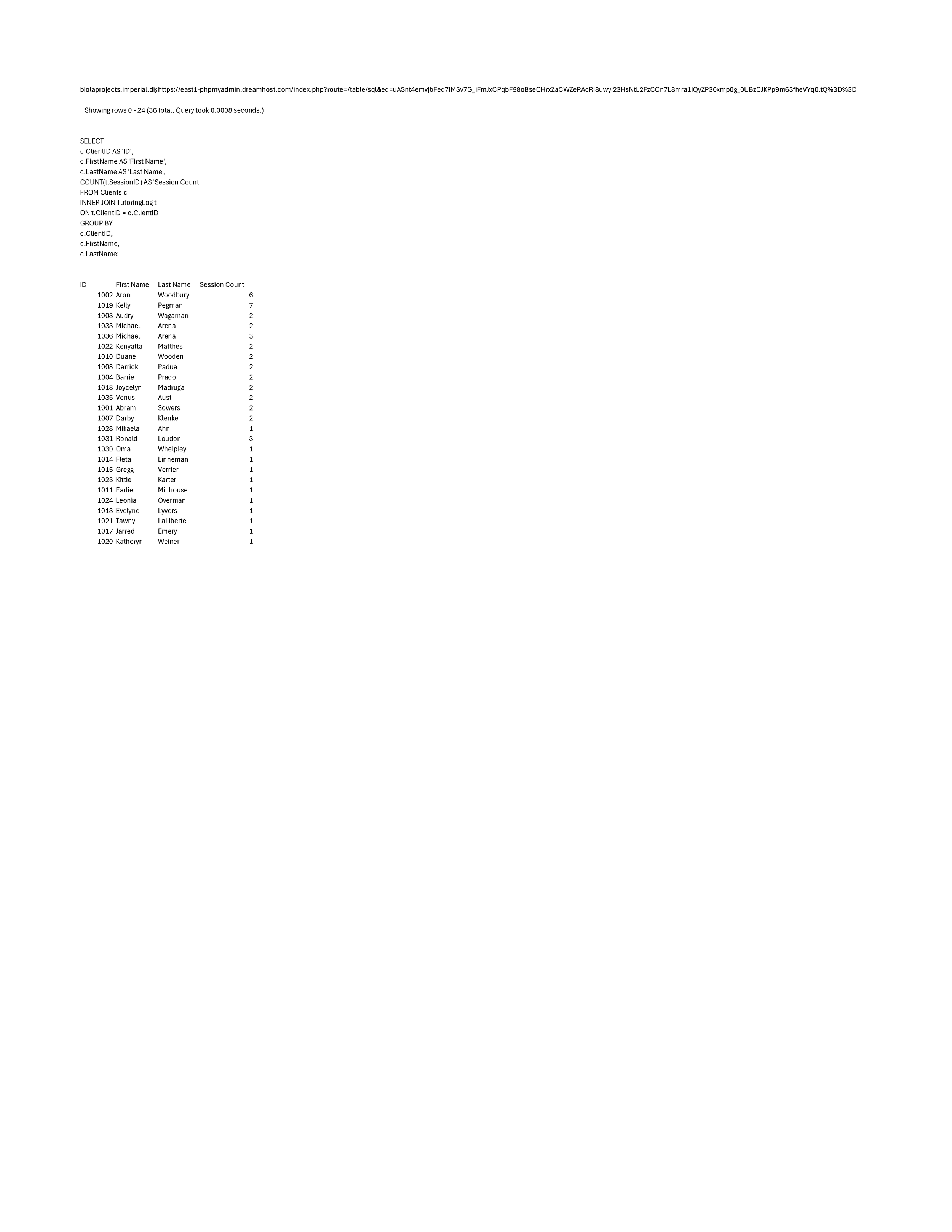 I used my knowledge of PHPMyAdmin to run various SQL queries and extract specific data to gain a clearer picture of the business’s client base.